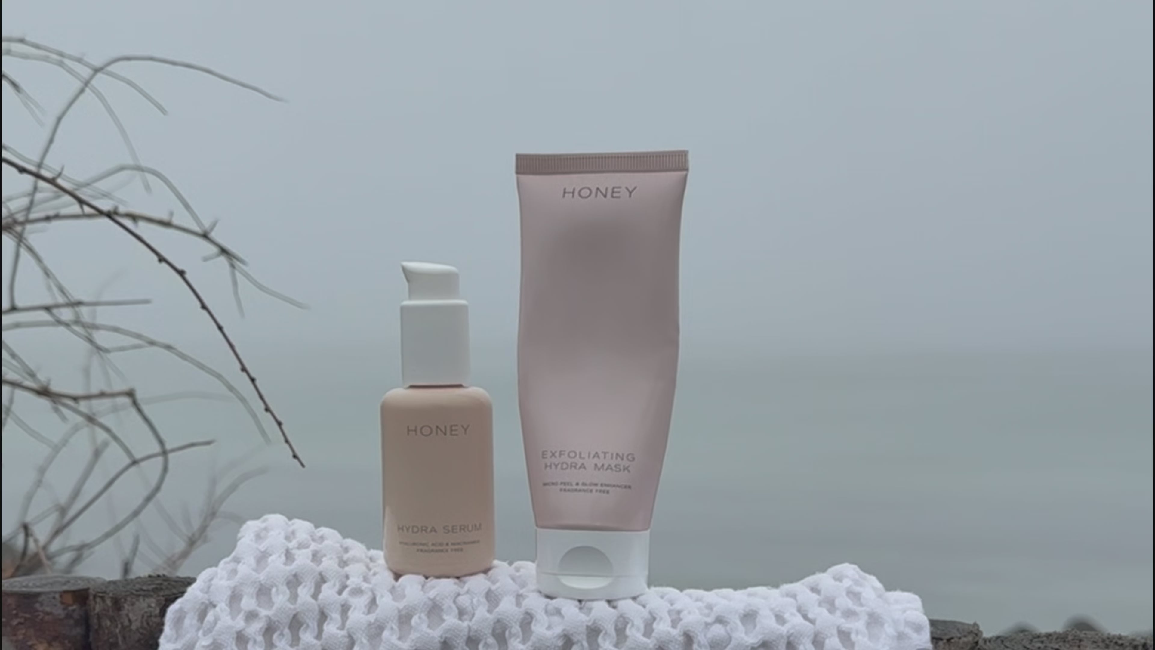 Exfoliating Hydra Mask er den første maske i HONEY-sortimentet, og den markerer en ny æra i vores univers. Den forener effektiv eksfoliering med dyb hydrering, der giver huden fornyet energi og glød. Her fortæller Bea Fagerholt og Liv Winther, stiftere af HONEY, hvad Exfoliating Hydra Mask kan og giver sine personlige tips til at få mest ud af dit hjemmeritual.