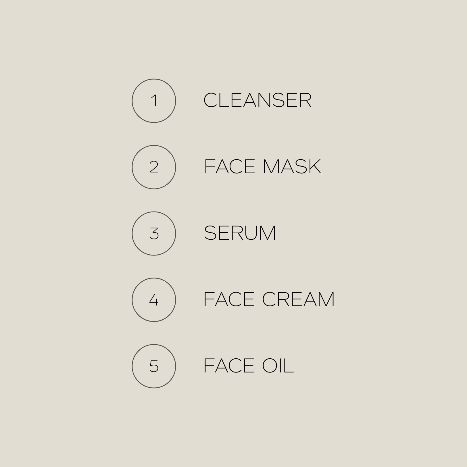 Herefter mærker du efter, hvad huden har brug for. Har den behov for ekstra pleje, kan du afslutte med Face Cream eller et par dråber Face Oil for at tilføre næring og forsegle fugten.